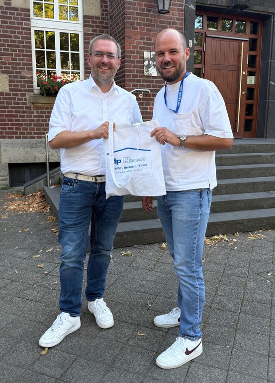Unser Geschäftsführer Henrik Albrecht im Gespräch mit dem Bürgermeister der Stadt Dormagen: