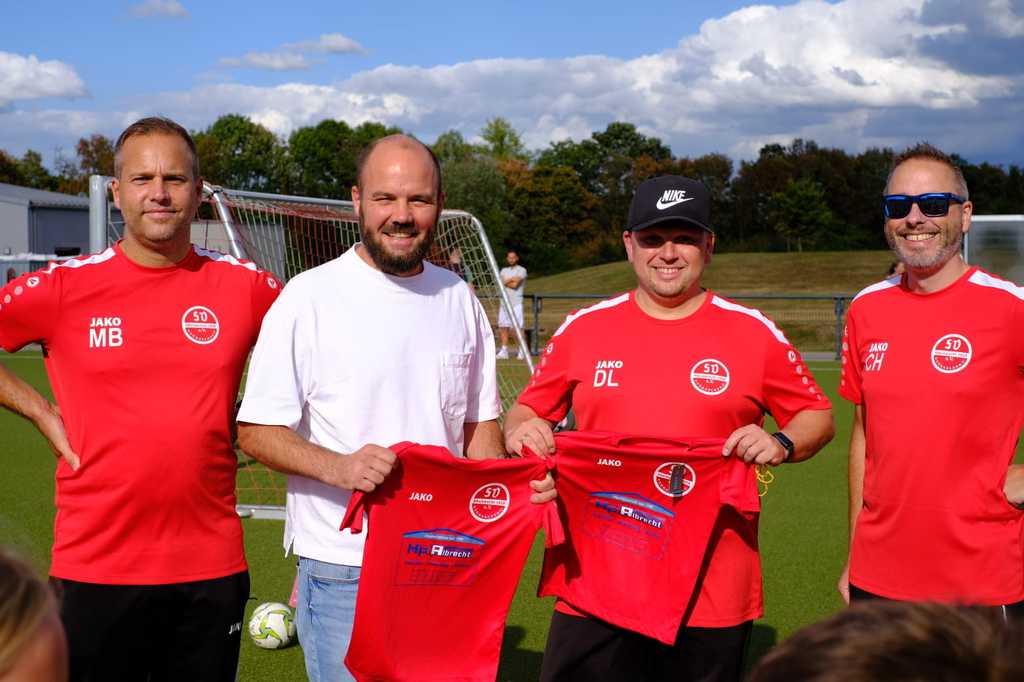 Auf dem Bild zu sehen: die Trainer Marc Baumgart, Daniel Leube und Christian Hübner zusammen mit unserem Geschäftsführer Henrik Albrecht.