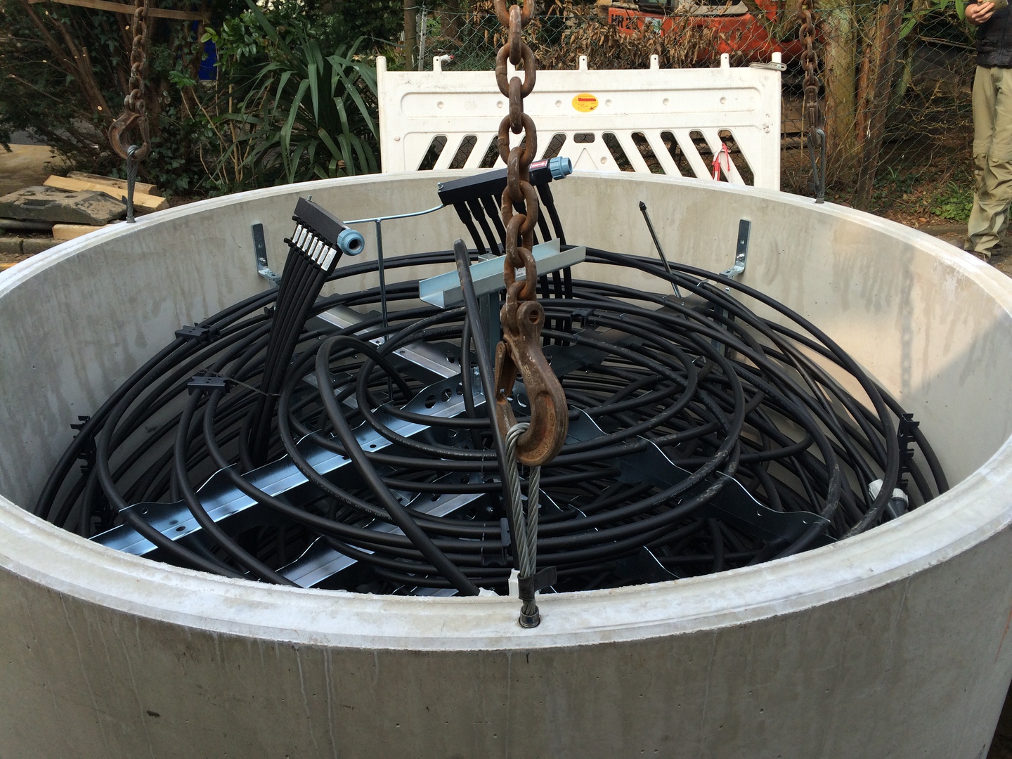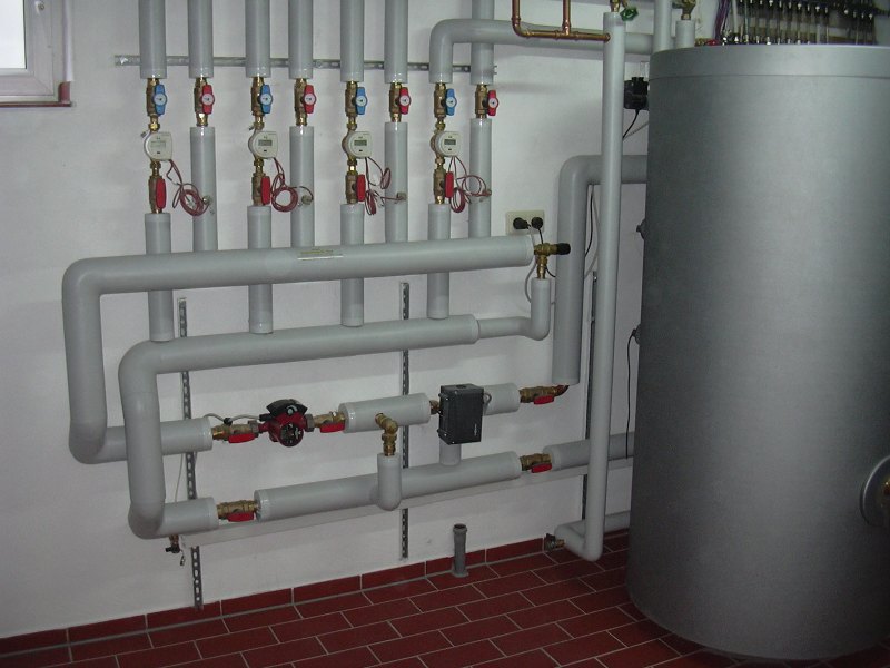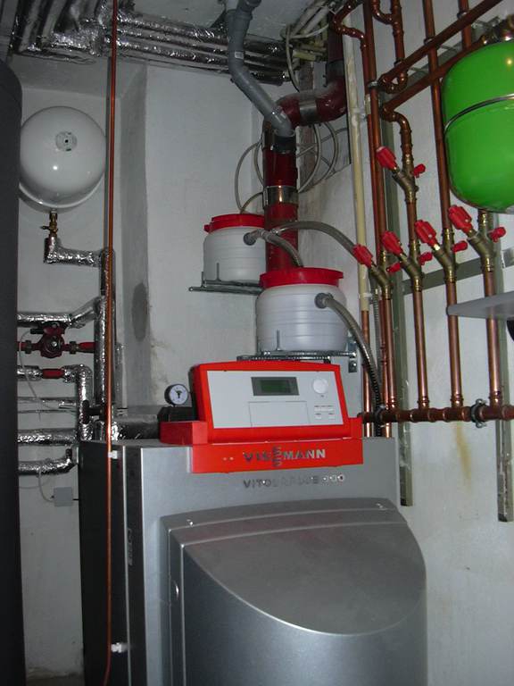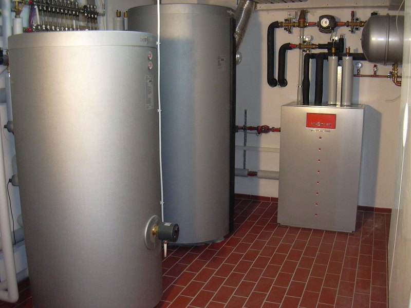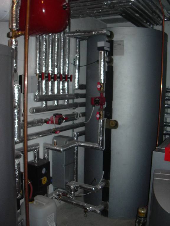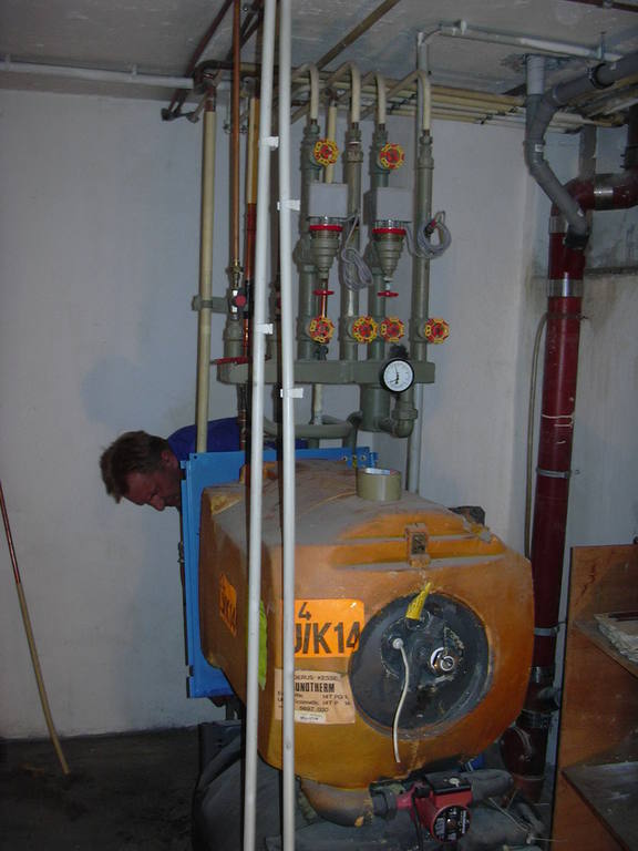Die Wärmepumpe besitzt eine Leistung von 34 KW und dient der Beheizung von 650 qm Wohnfläche sowie der Warmwasser Bereitung.