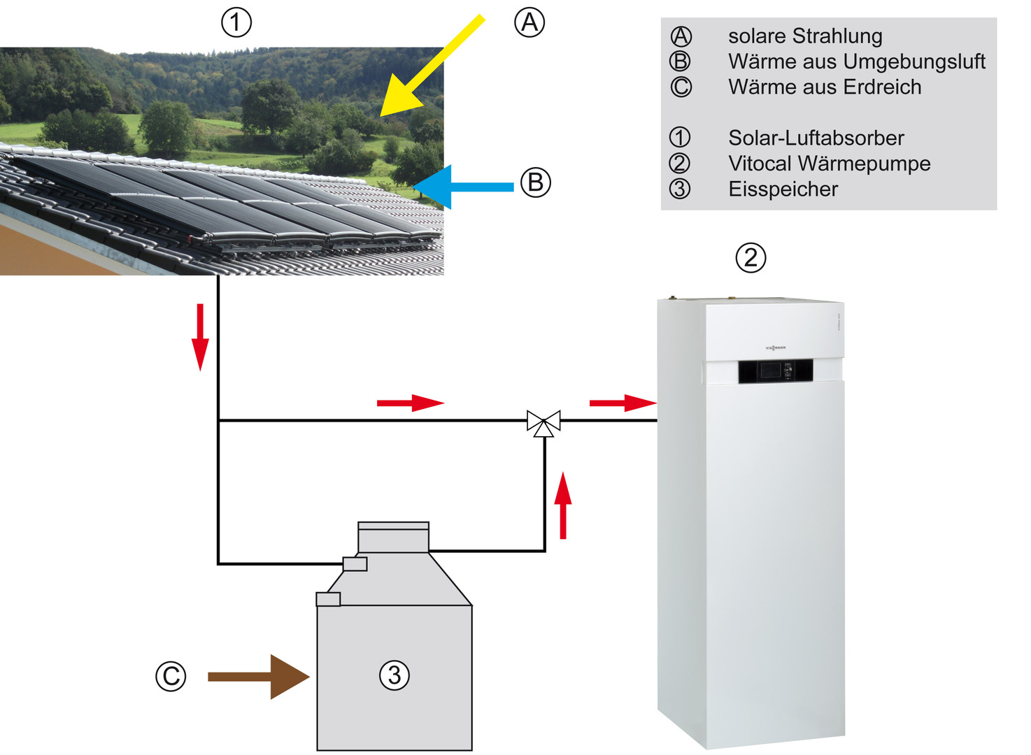 Die Wärmepumpe wird von einem Eisspeicher als Energiequelle versorgt.